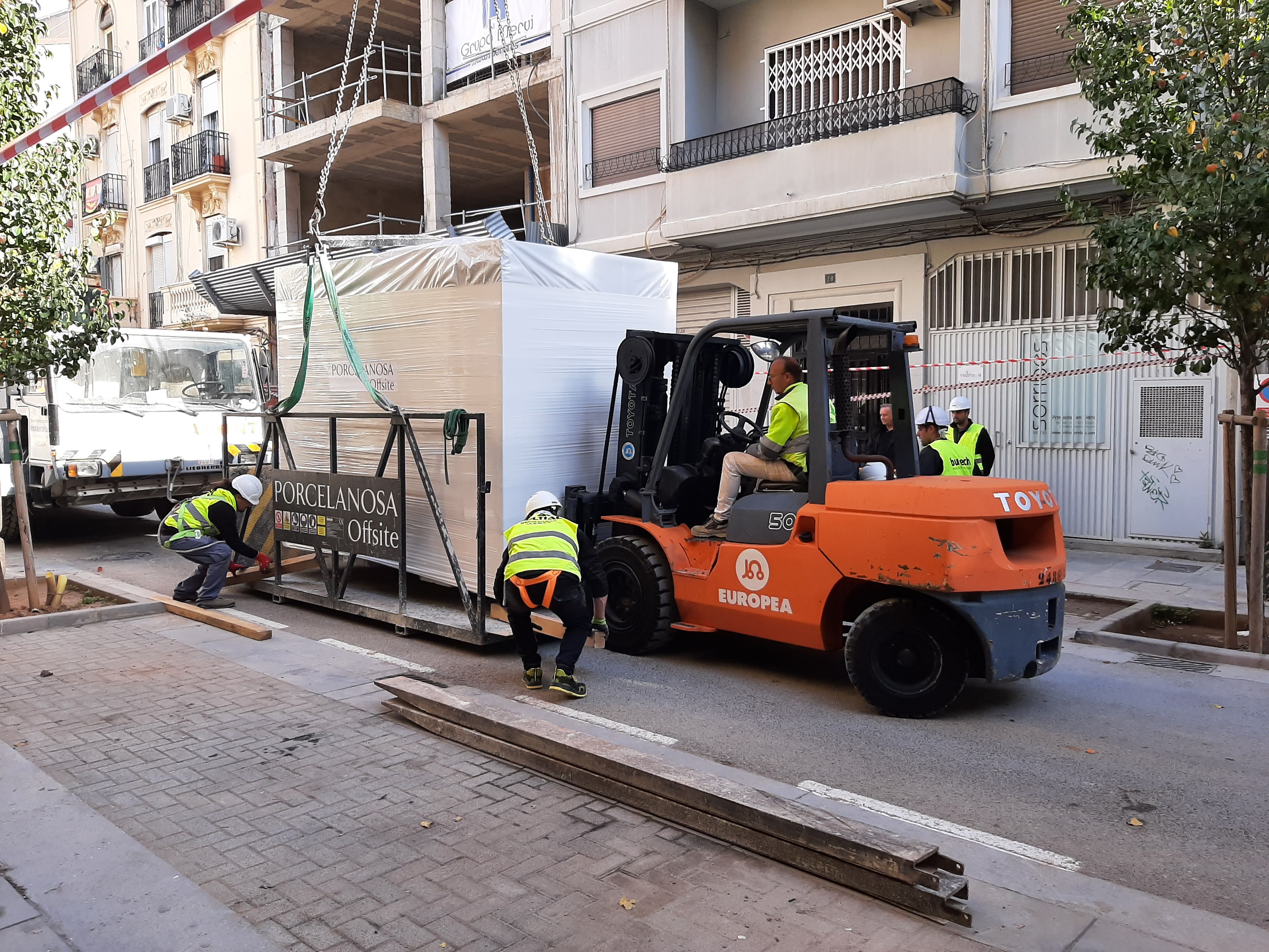 Ya hemos iniciado la instalación de los Monobath (baños industrializados) de Porcelanosa en las obras del Edificio Pepita 30. A pesar de ser nuestra primera experiencia en industrialización, la instalación en obra se está llevando a cabo con mucha solvencia gracias a la colaboración con el equipo de Porcelanosa que está permitiendo resolver los pequeños inconvenientes que van surgiendo de forma muy satisfactoria.